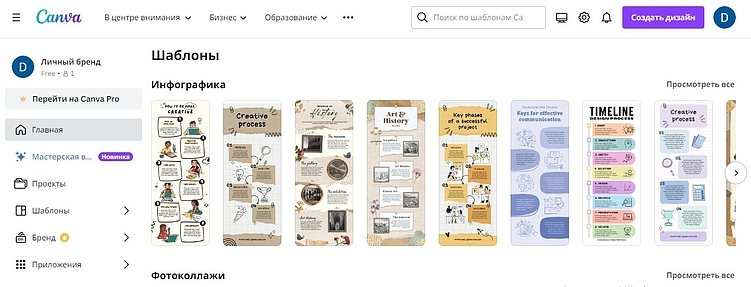 При этом подготовка такого контента в целом несложна и доступна — для этого не обязательно быть специалистом в области дизайна. Инструменты для создания инфографик, такие, как Canva или Piktochart, предлагают широкий выбор шаблонов и элементов: