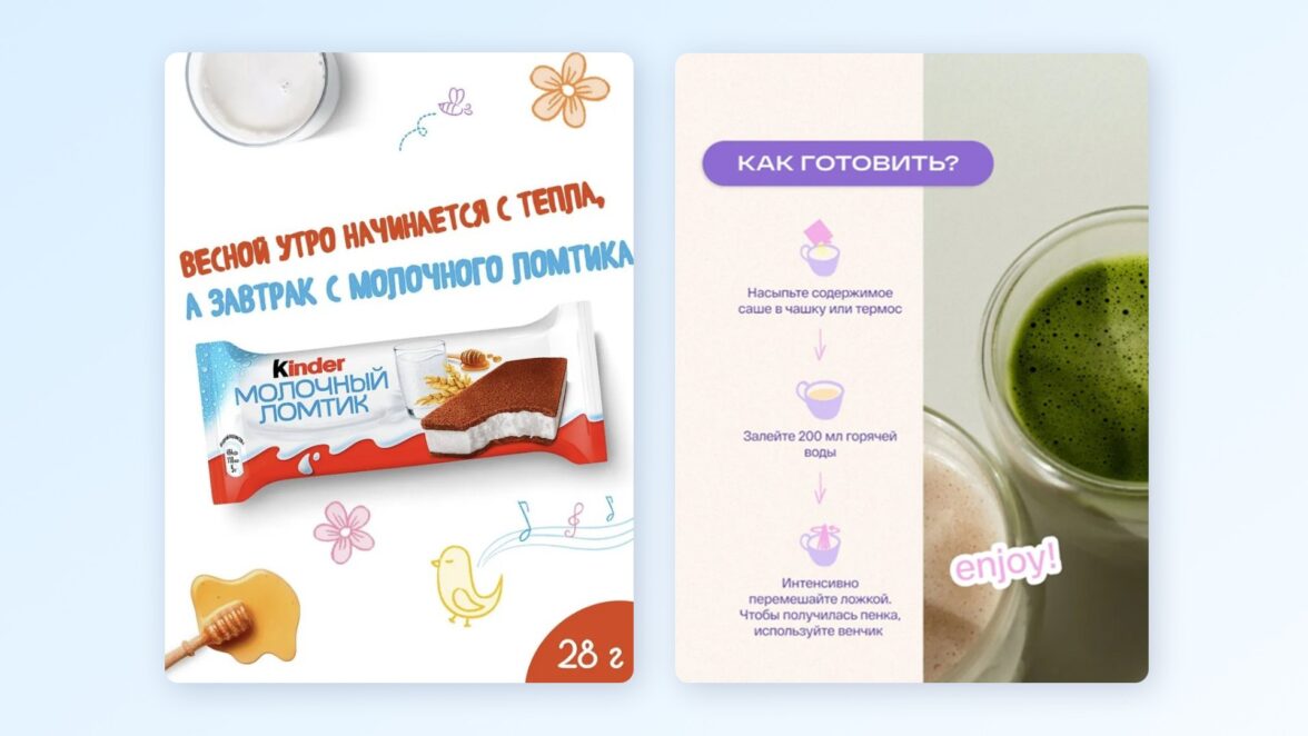 Также среди трендов с точки зрения смысла — брендинг и сторителлинг. Миллениалы и Gen Z требуют больше, чем просто продукт — им важна эмоциональная связь. Контент должен транслировать ценности, историю и философию бренда. Это хорошо работает в премиум-сегментах, фуд-категории, косметике.