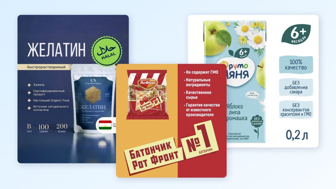 Все больше брендов предпочитают так называемые trust-бейджи (символ или значок, который помогает установить доверие к продукту). Иконки Halal, Vegan, Gluten-free, Organic, ISO повышают конверсию. По данным Nielsen, (Nielsen, 2024 года; синдикативное исследование ORO, 2024 года, Россия 100+, 18–65 лет), до 57% покупателей воспринимают такие бейджи как знак качества. Это критично для поколений X и 60+, которые ищут гарантии.