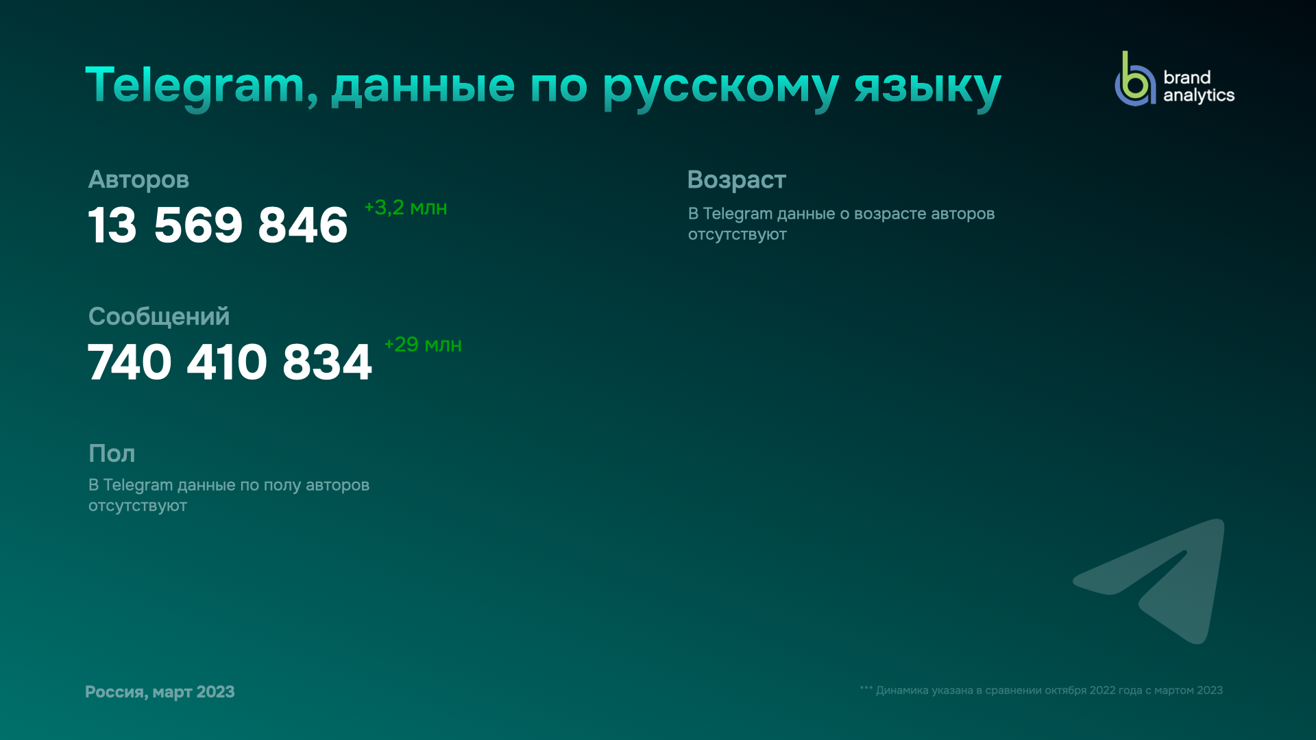 Во время исследования было проанализировано 2,4 млрд сообщений за период с октября 2022 года по март 2023 года. Автор — пользователь, написавший хотя бы одно публичное сообщение за месяц. Сообщение — любой открытый (публичный) пост — в статусе, на стене, в группах, комментариях, истории в Instagram* и «ВКонтакте» от авторов с аудиторией более 10 тыс.