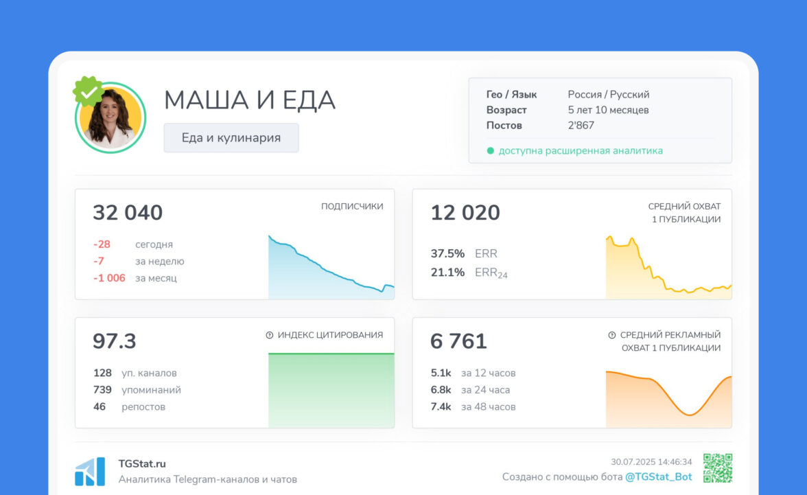 Шаг 4. Провести анализ канала: метрики и контент. По ним можно узнать, насколько канал подходит для сотрудничества. Нужные показатели зависят от целей публикации. Например, если цель — продажи, смотрите на количество переходов с поста (для удобства — всегда зашивайте UTM-метку в ссылку). Для повышения узнаваемости важнее охваты.