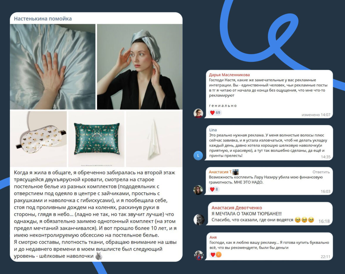 общую ДНК. Проверьте стиль, формат и оформление блога. Они должны соответствовать ценностям бренда. Реклама, которая не учитывает ToV бизнеса, может вызвать обратный эффект. Убедитесь, что аудитория канала пересекается с вашей, а тема посева ее заинтересует;