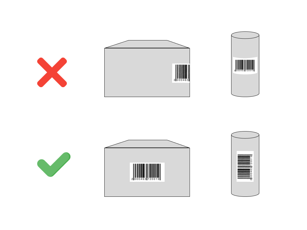 Наклейку нужно разместить так, чтобы избежать изгибов и заломов — из–за них штрих–код может не считаться