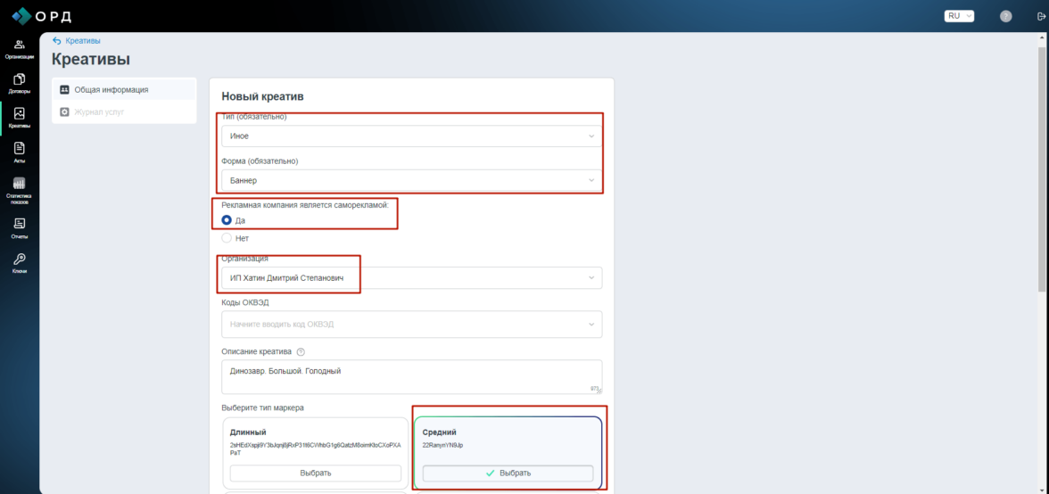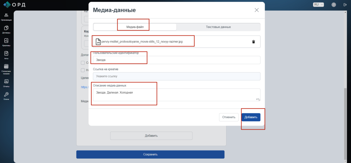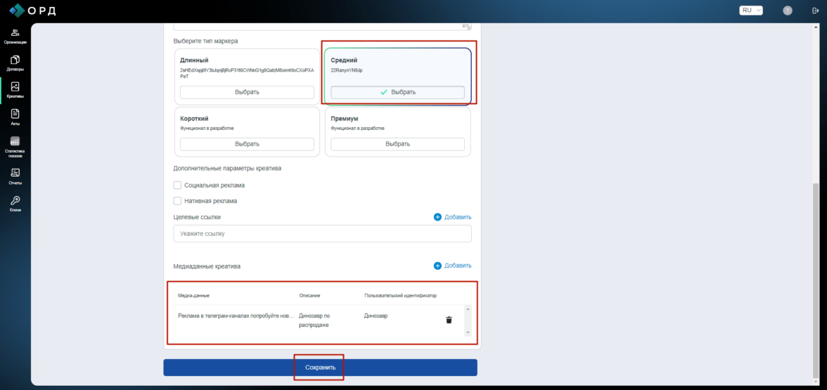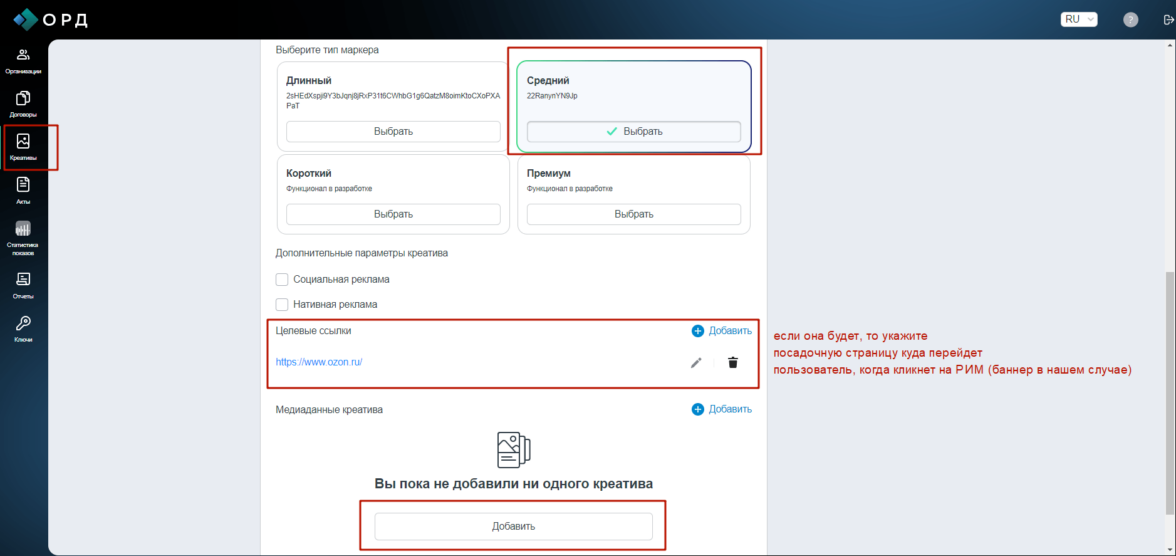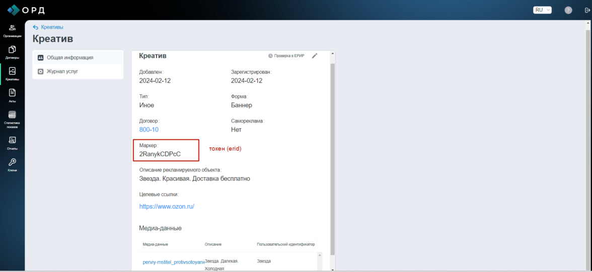 В итоге креатив будет загружен и РР получит токен для нанесения на РИМ.