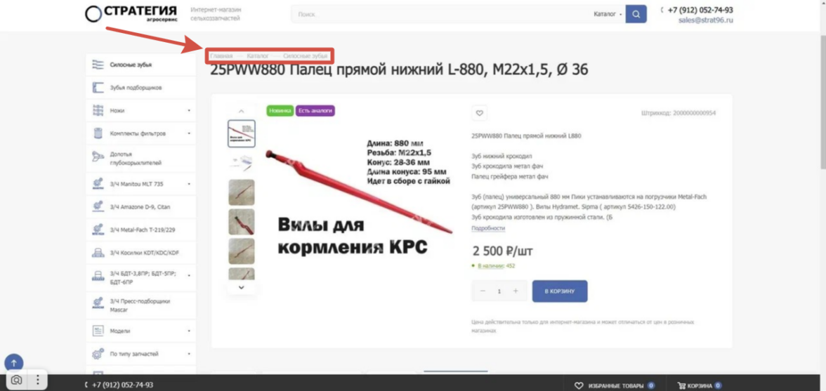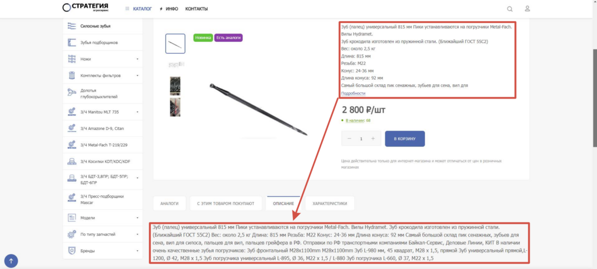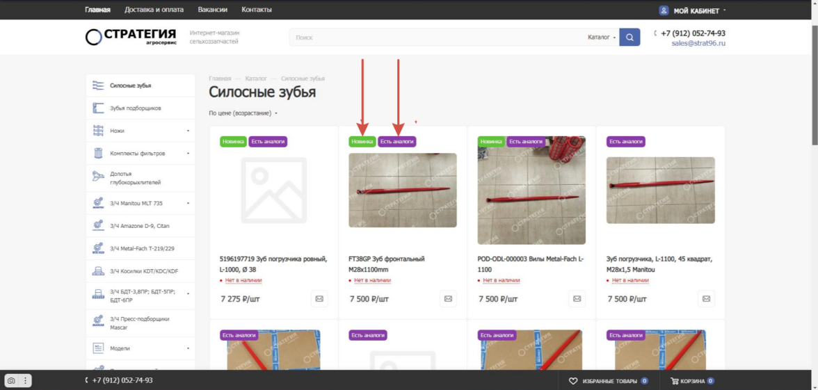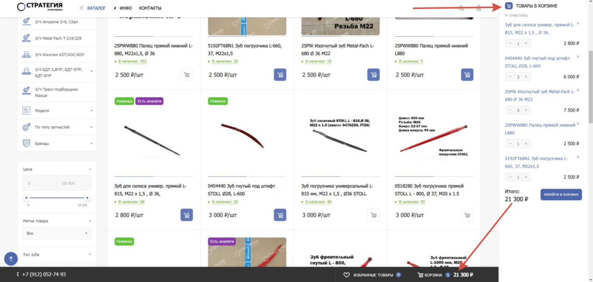 В рамках проекта интернет-магазина «Агросервис “Стратегия”» были реализованы: