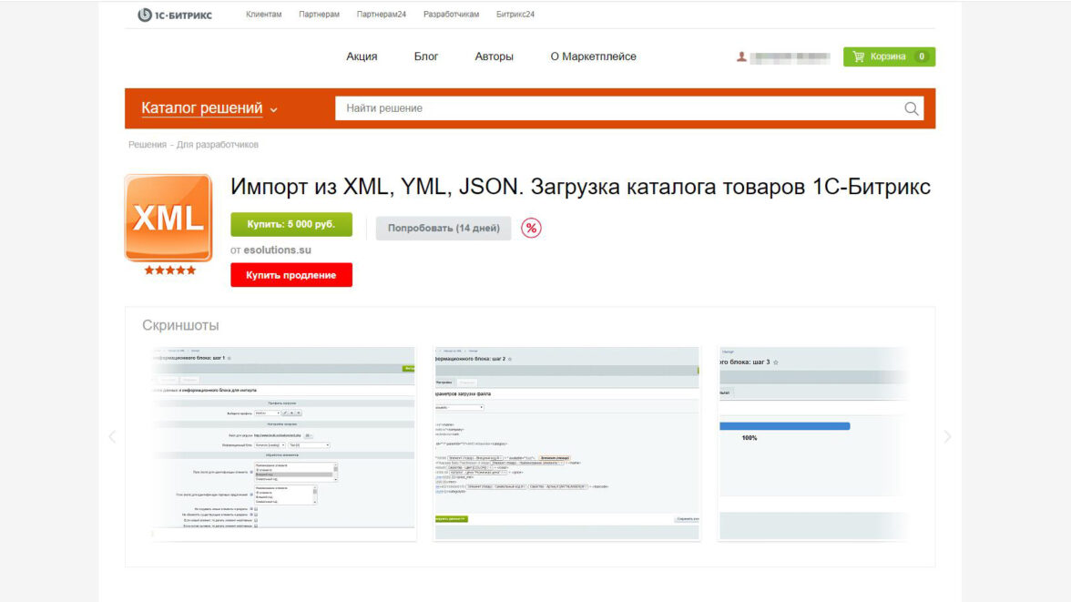 Но для решения наших задач этот способ не подходит — ведь нам предстоит не просто загрузить как есть, а применить множественные преобразования значений при загрузке каталога. Для этого мы используем решение «Импорт из XML, YML, JSON. Загрузка каталога товаров 1С-Битрикс» от наших многолетних партнеров — компании Esolutions.