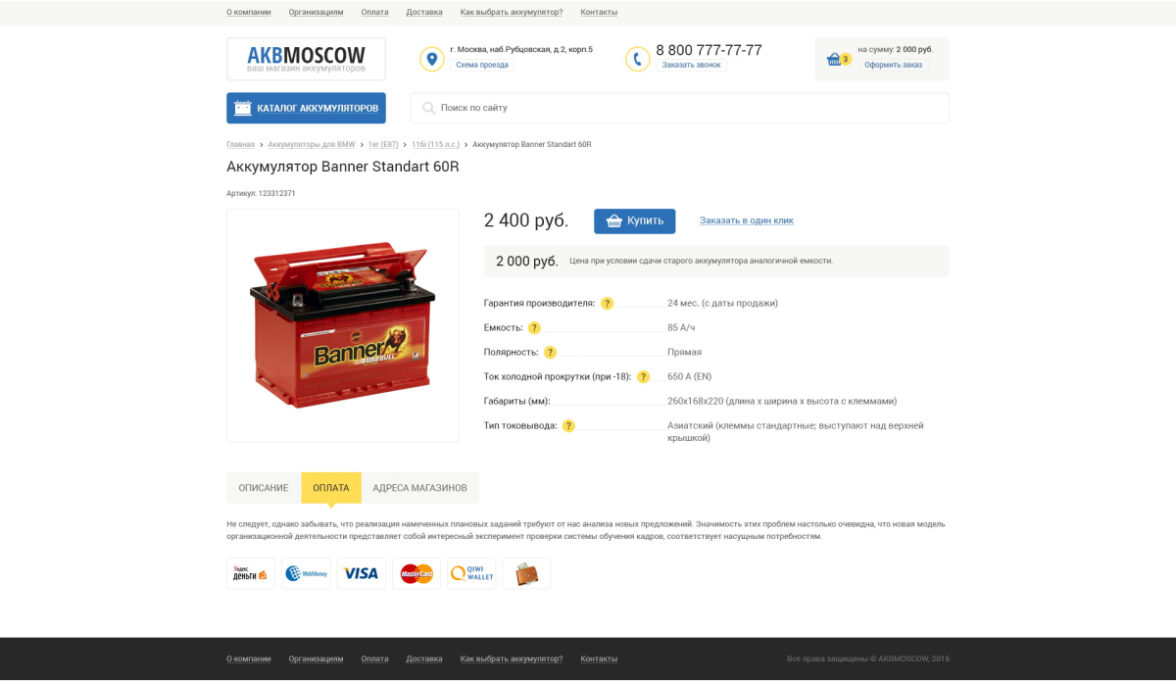 Интернет-магазин аккумуляторов для «AKBMOSCOW»
