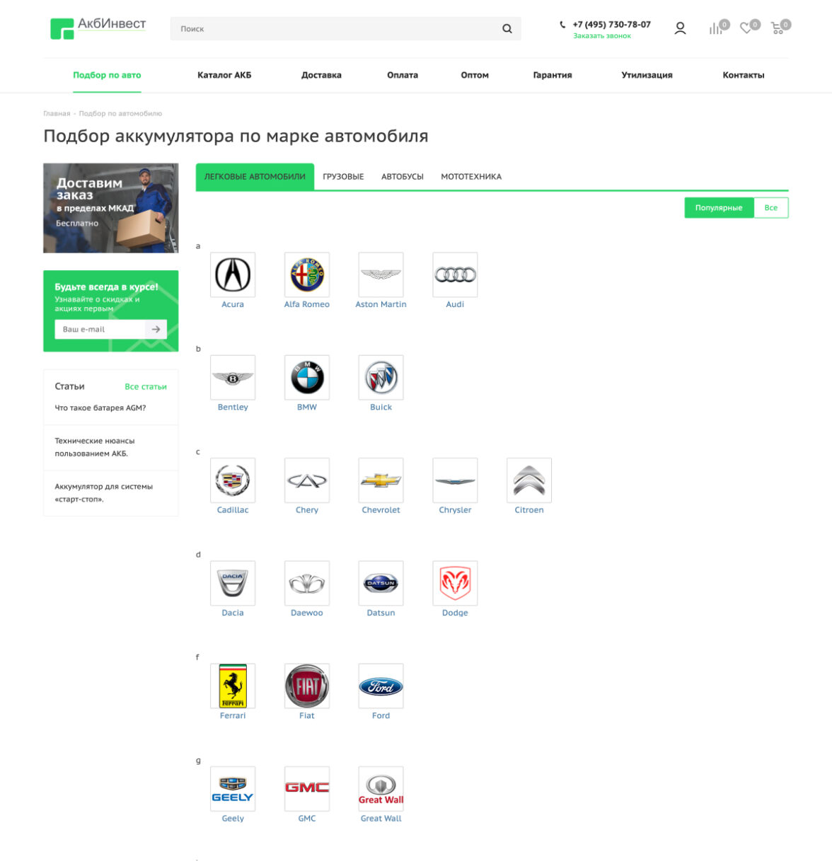 Разработали интернет-магазин автомобильных аккумуляторов на 1С-Битрикс.