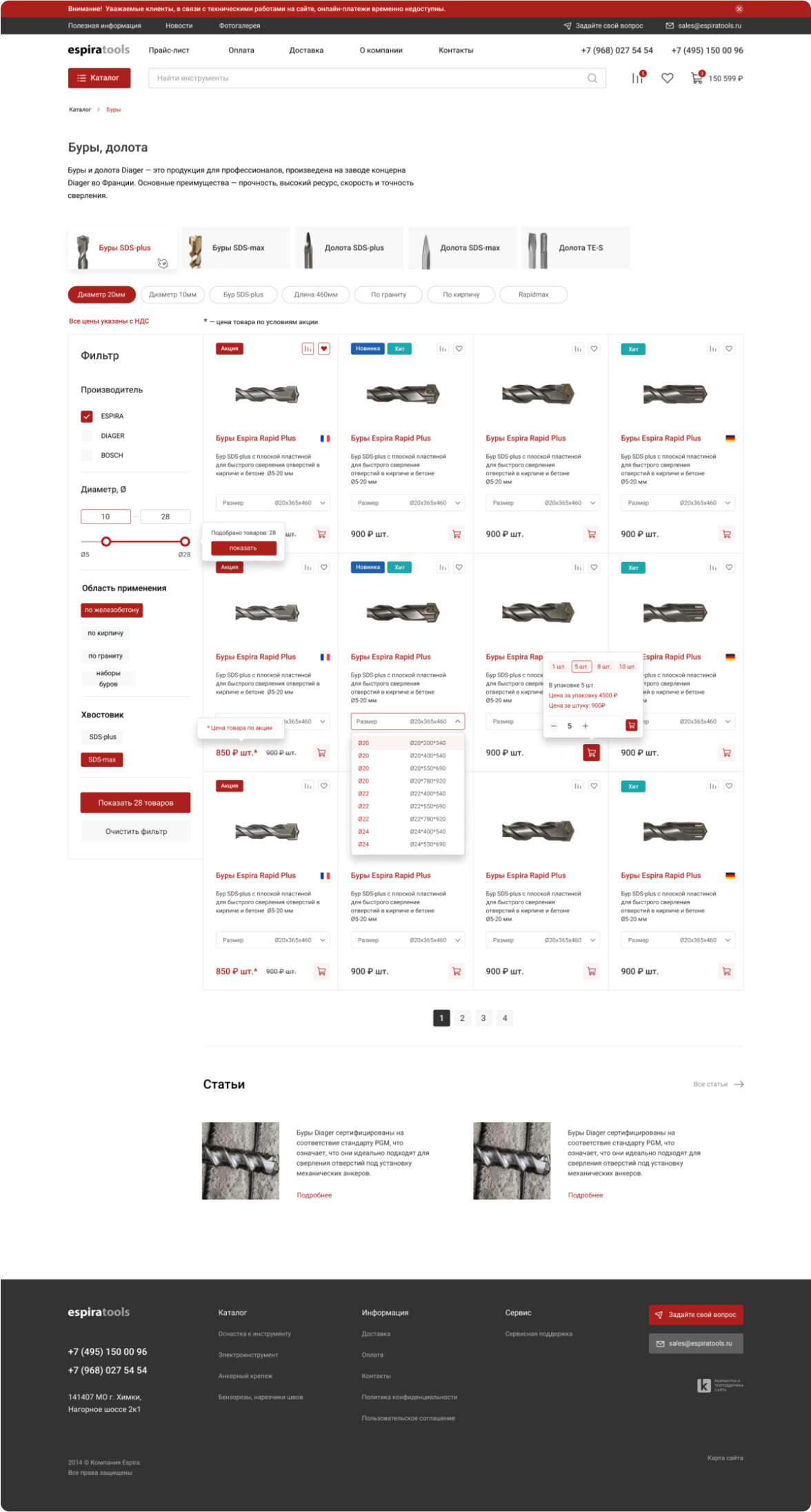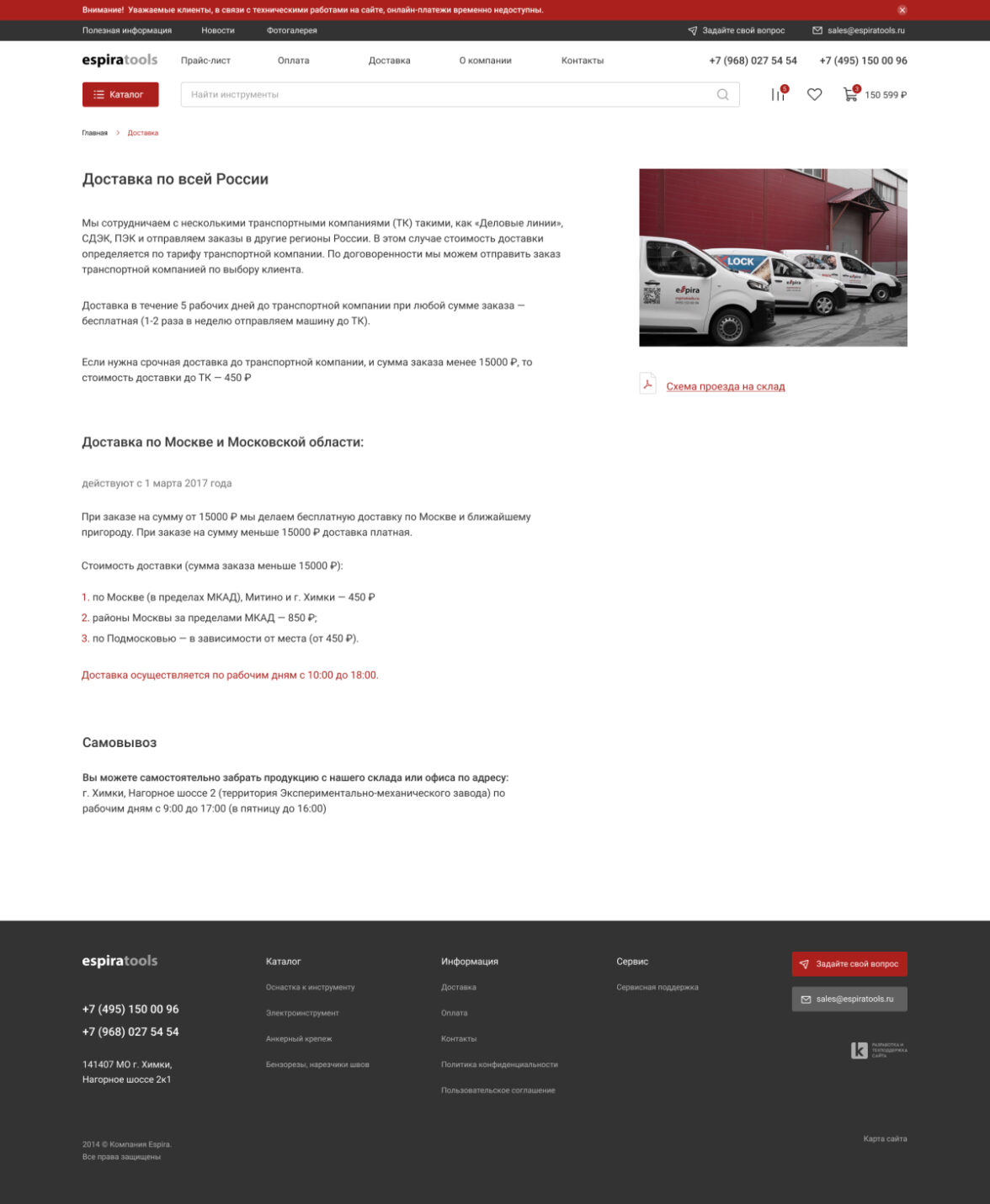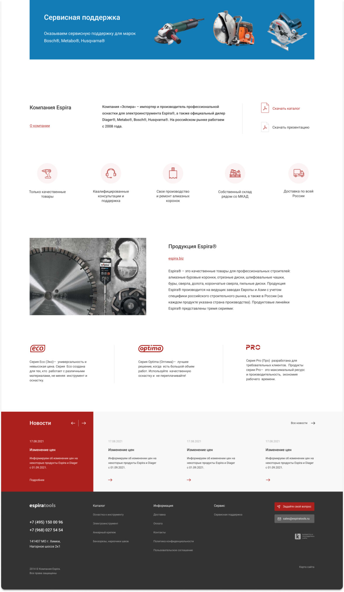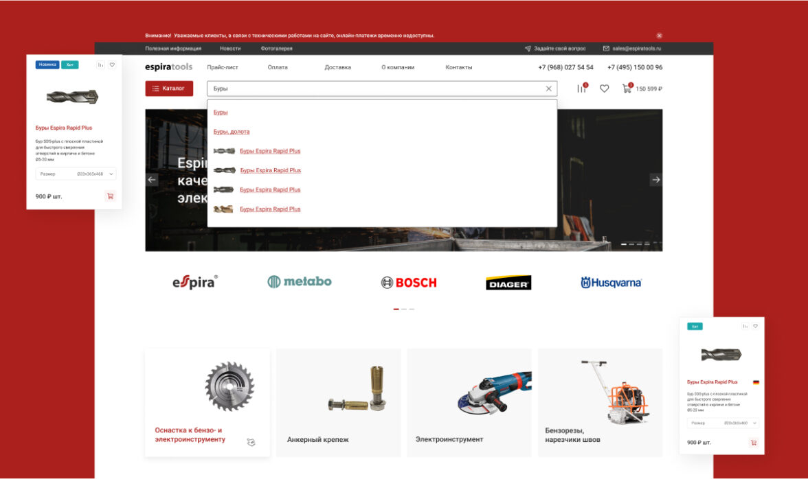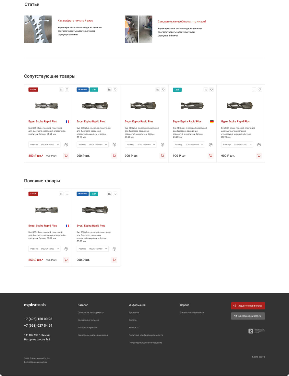 Редизайн существующего сайта espiratools.ru с целью привлечения новых покупателей
