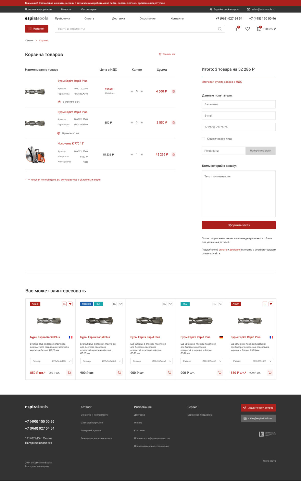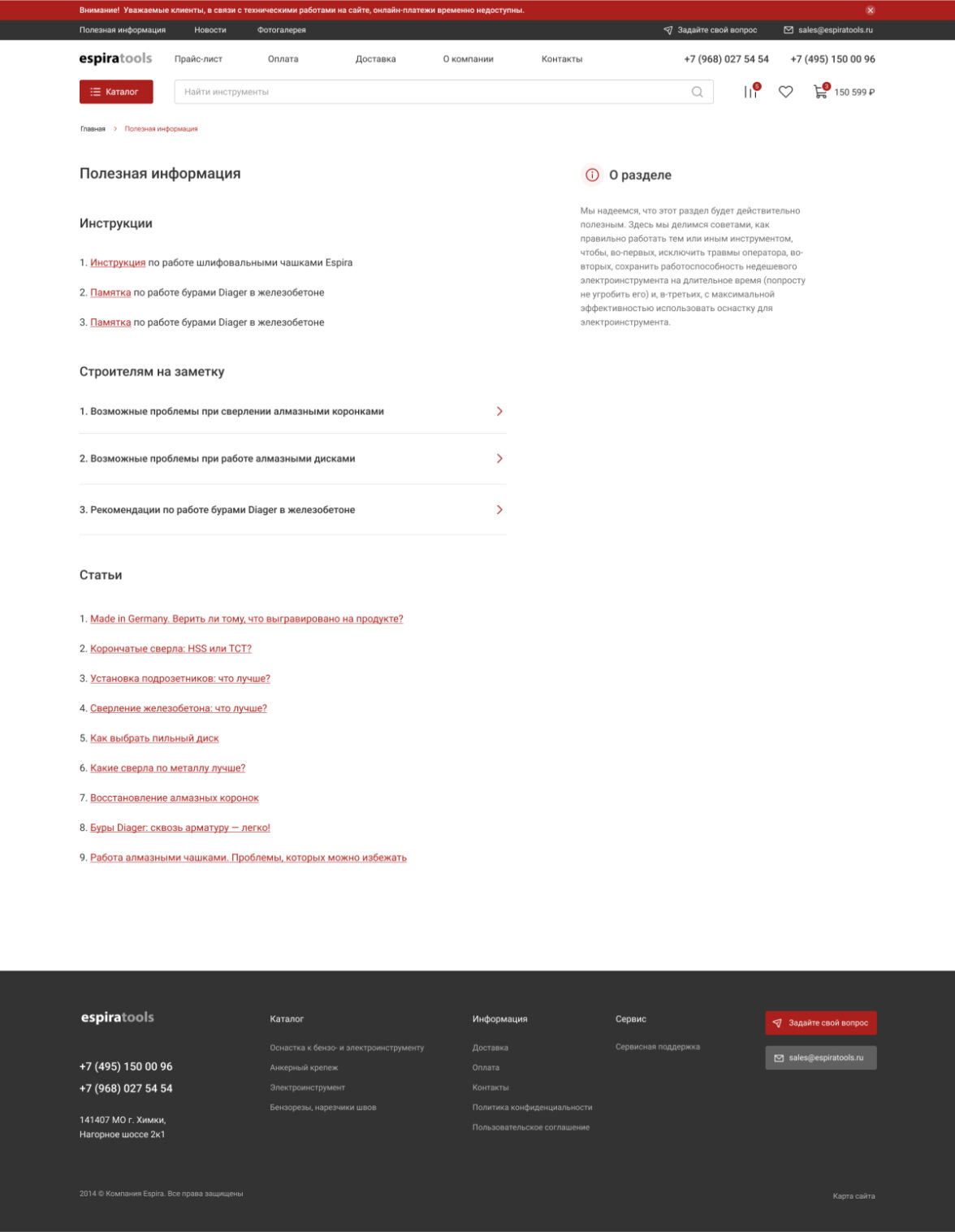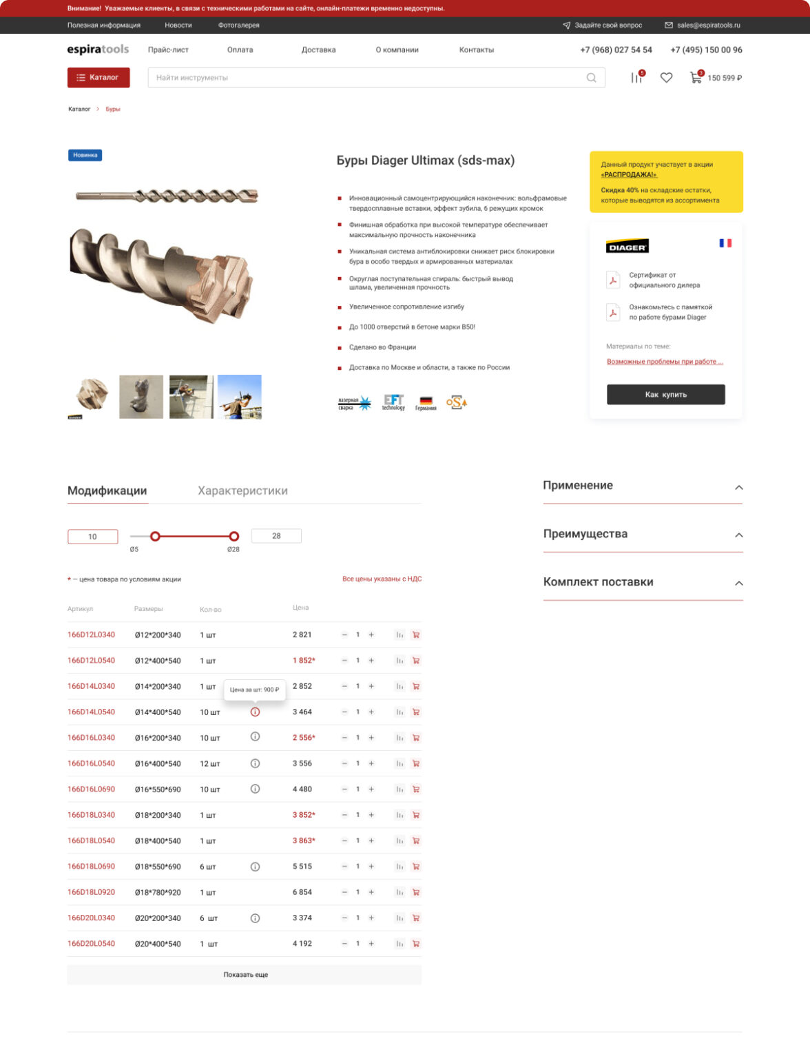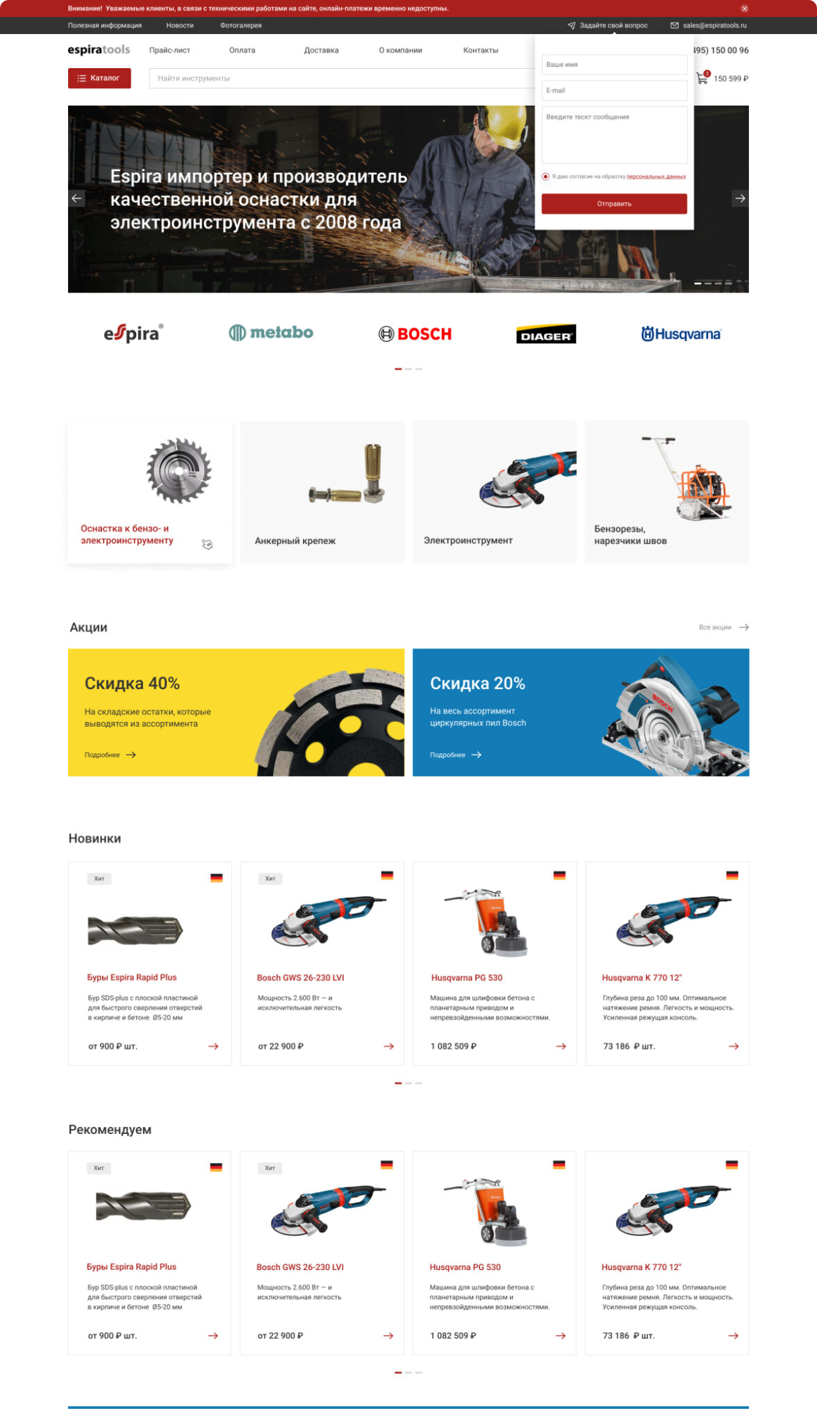 Редизайн существующего сайта espiratools.ru с целью привлечения новых покупателей