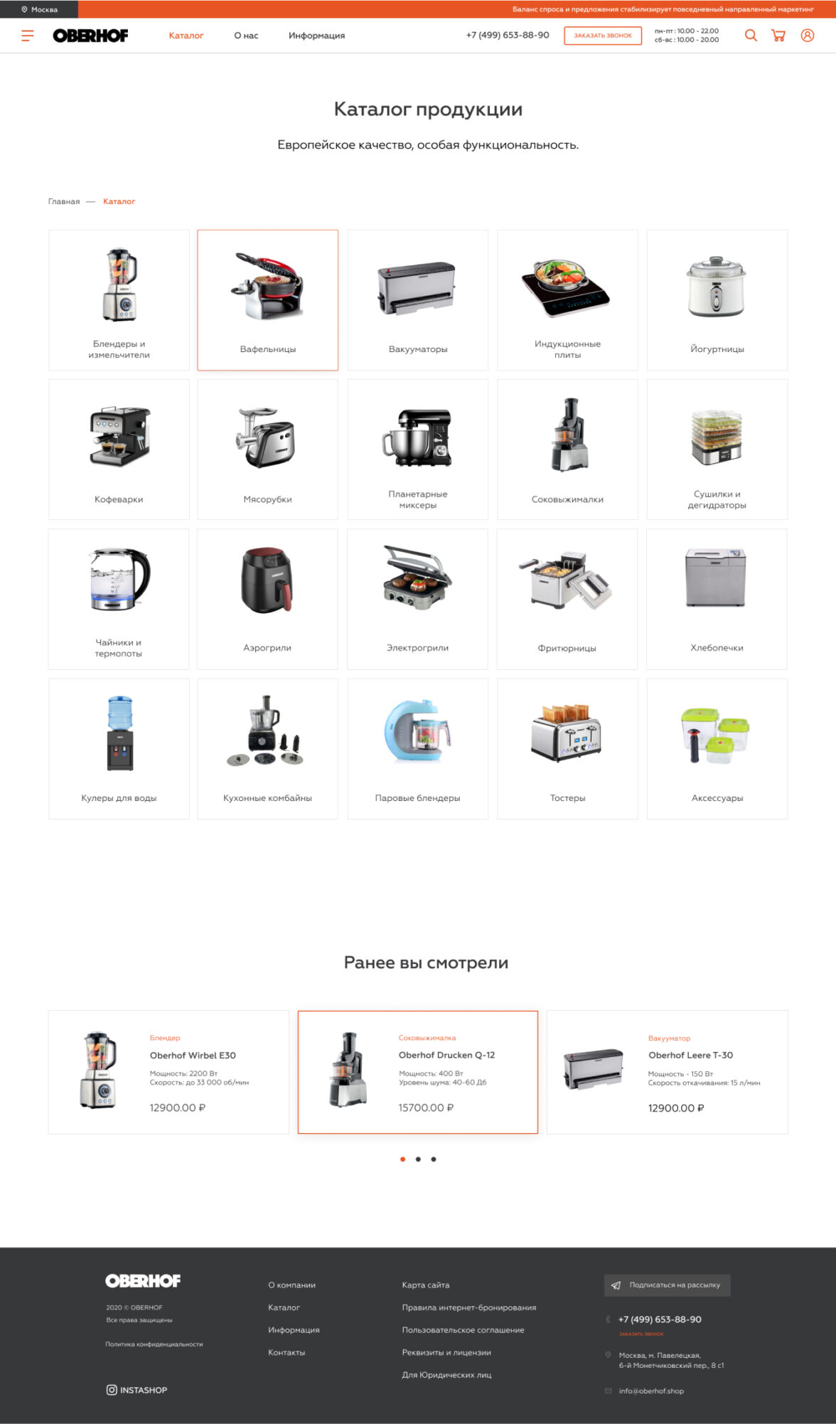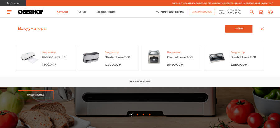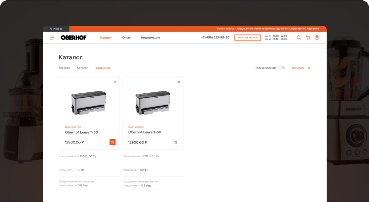 Мы спроектировали, разработали и запустили интернет-магазин бренда бытовой техники Oberhof.