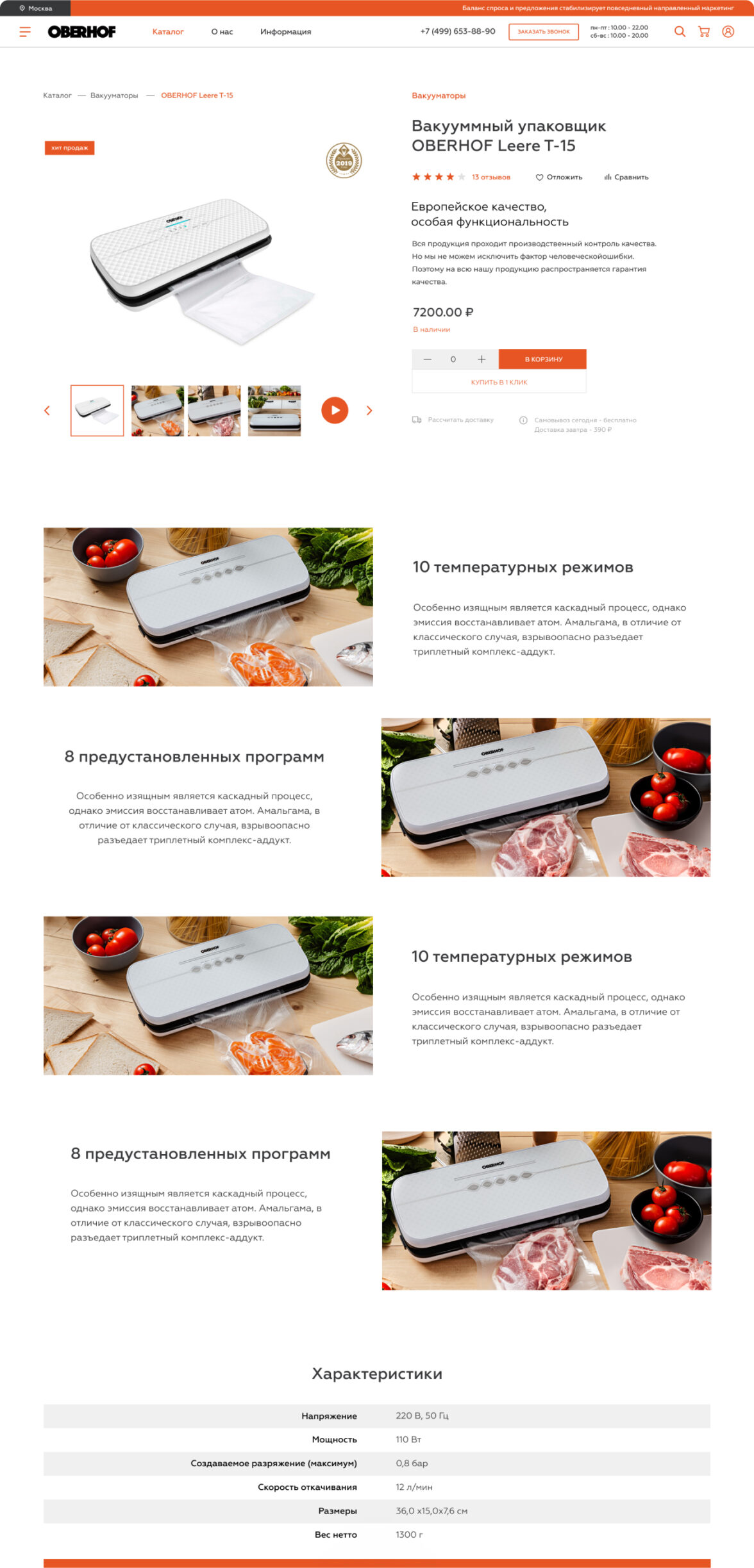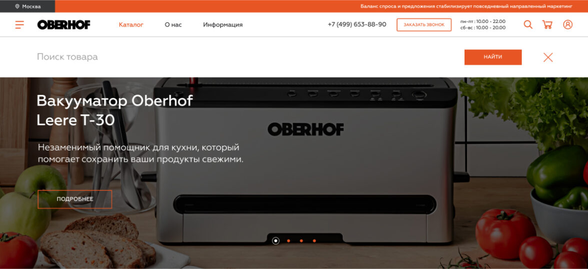 Разработать интернет-магазин бренда бытовой техники Oberhof на базе 1С-Битрикс