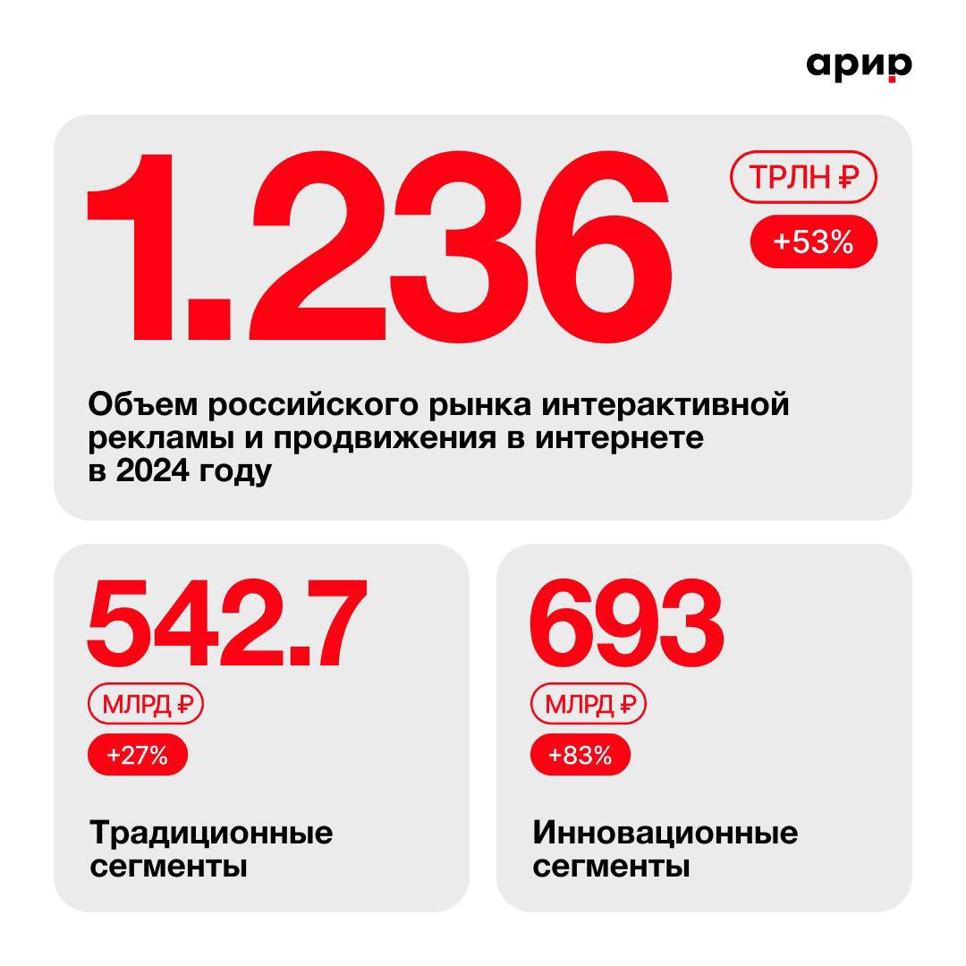 Интернет-триллионеры: по оценке АРИР в 2024 году инвестиции в онлайн-рекламу достигли 1,2 трлн рублей
