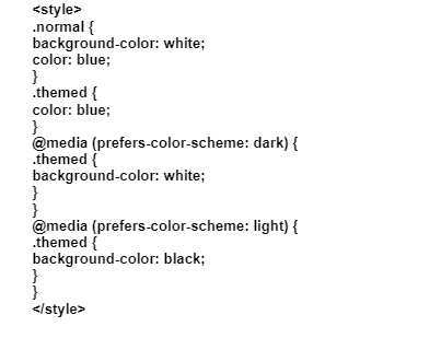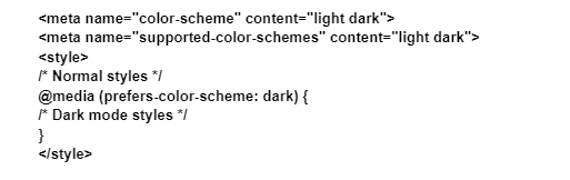 Через prefers-color-scheme указываются элементы, которые должны меняться в Dark Mode, а какие нет. Для этого добавьте в блок