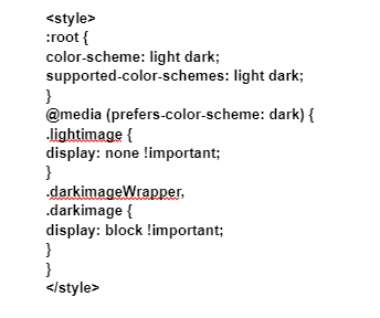 Использовать код нужно, чтобы правильно и предсказуемо инвертировать цвета в email. В область в коде письма добавляются мета-теги и медиа-запросы для управления стилем email в тёмной и светлой темах.