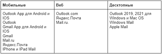 Почтовики поддерживают неполную инверсию цвета изменением светлых областей и текста в имейл на тёмный. Также полную, когда другими становятся и оттенки изначально тёмных цветов.