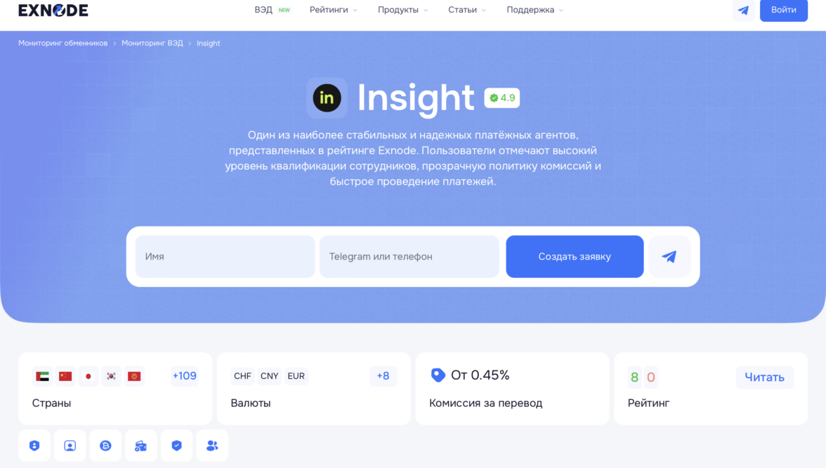 Это надежный и популярный платежный агент, предлагающий широкий спектр услуг для международных расчетов. Он помогает бизнесам быстро и безопасно осуществлять инвойс-оплату с минимальными комиссиями. Также, Insight поддерживает различные криптовалюты для международных платежей. Сервис обеспечивает полное соблюдение законодательства, что важно для соблюдения всех валютных регуляций.