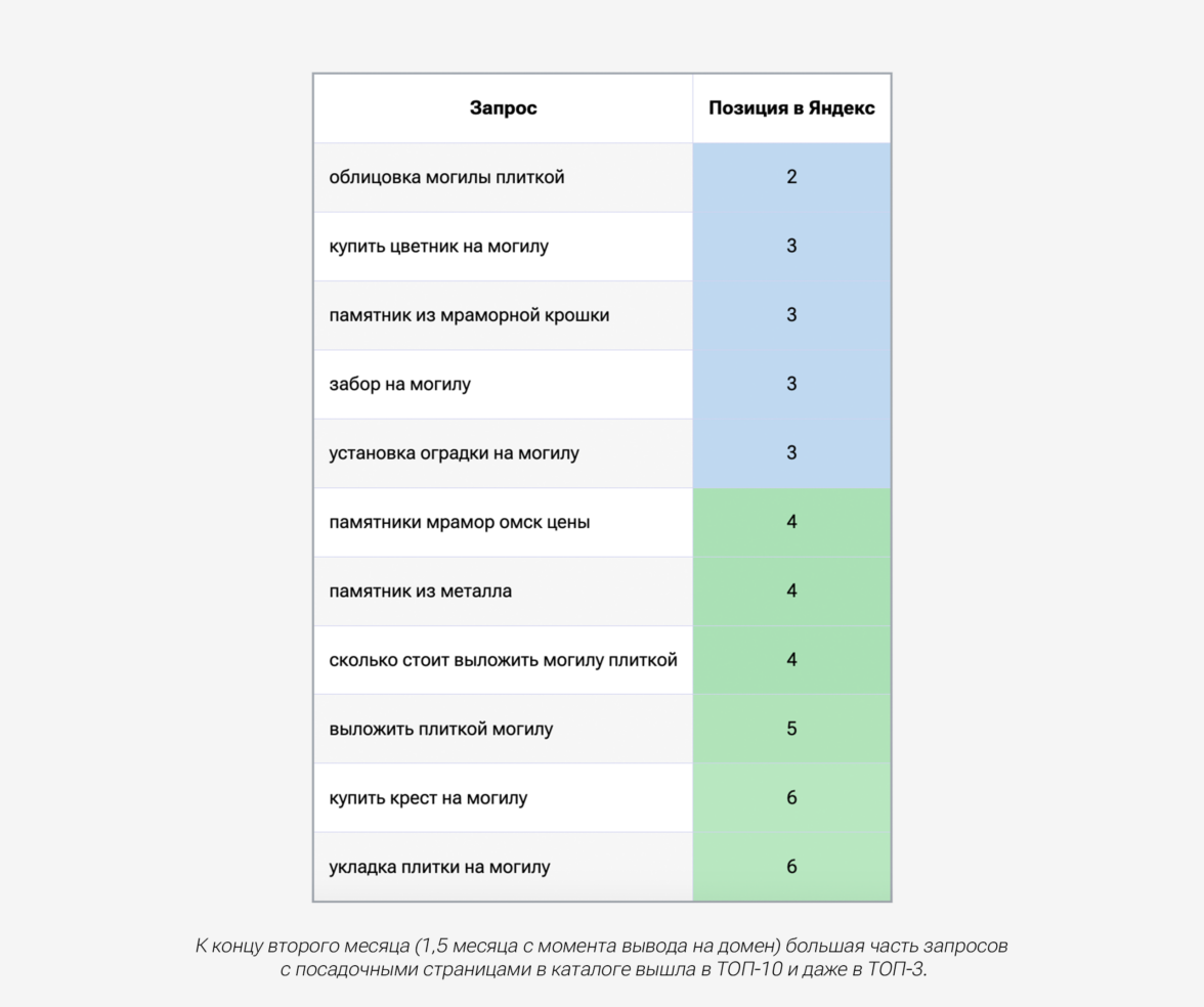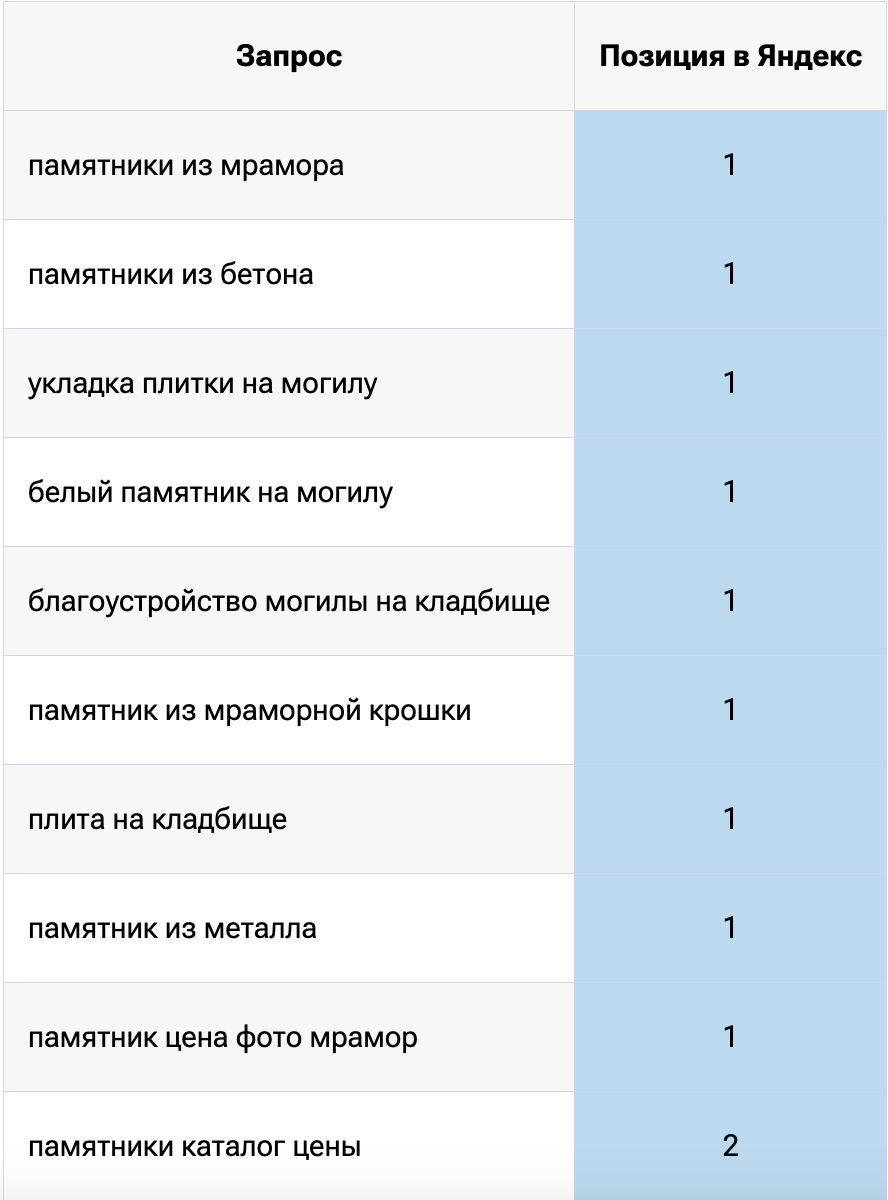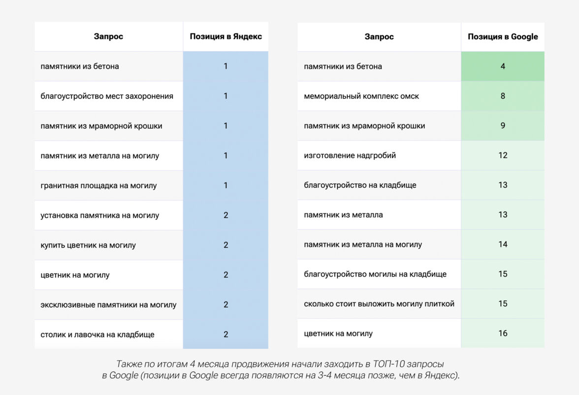 Регулярный анализ конкурентов и семантического ядра позволяет находить новые точки роста и пути привлечения клиентов, например, востребованной оказалась услуга по уборке на могилах к родительскому дню.