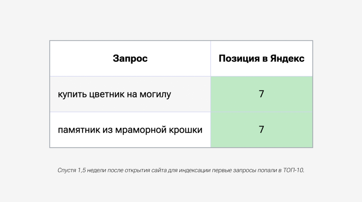 Так как команда разработчиков ориентировалась на наши рекомендации, грубых ошибок, мешающих продвижению, не оказалось, и мы открыли сайт для индексации в кратчайшие сроки — всего за 3 дня.