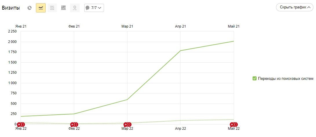Количество переходов из поиска в мае 2022 увеличилось в 20 раз относительно мая 2021