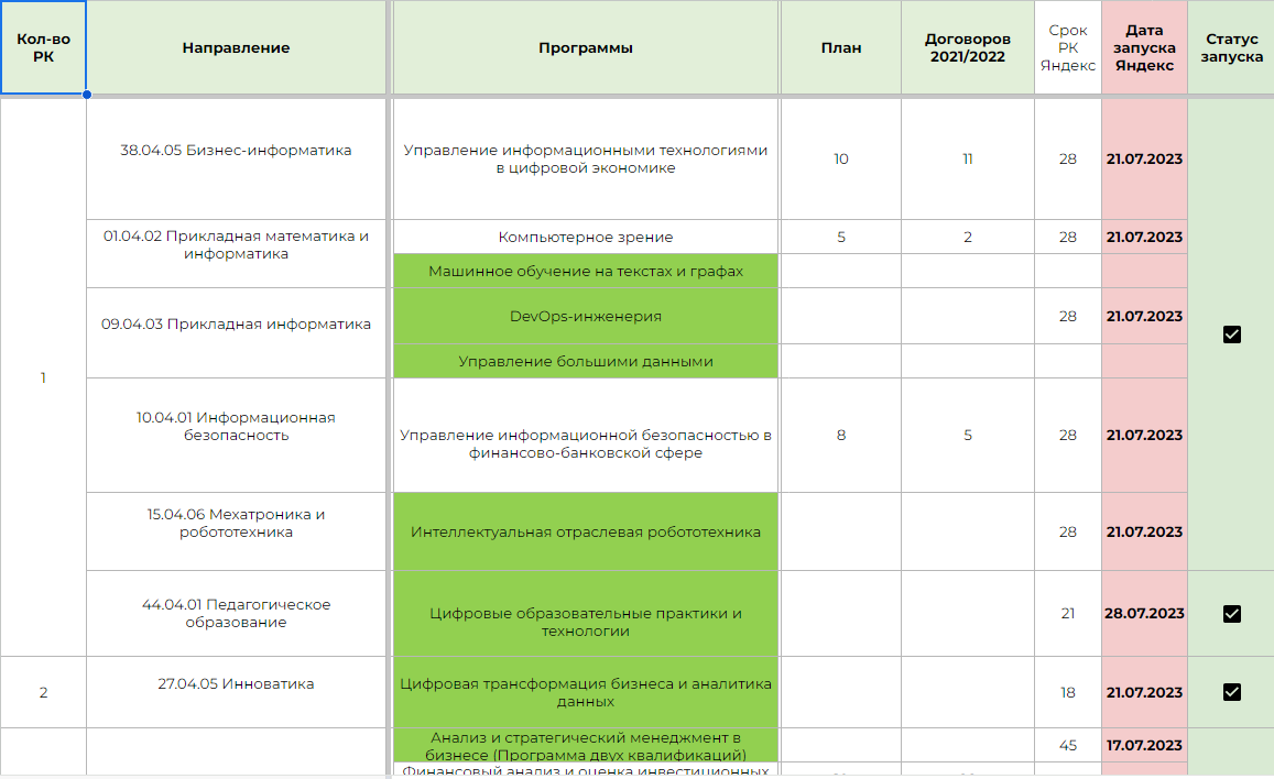 В результате настройки получилось 84 уникальных рекламных кампаний на Бакалавриат и 75 рекламных кампаний на магистратуру.
