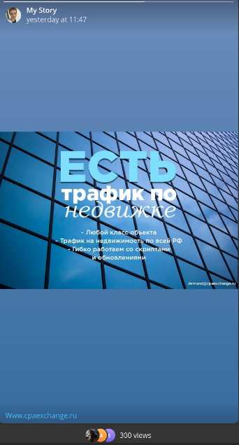 В рамках CPAExchange мы попробовали разместить несколько офферов. Для широты охвата все-таки нужна большая записная книжка сохраненных контактов. Охват у нас получился до 500 просмотров. Мы размещали рекламу и вебинары, и канала в ВК, и исследование, и анонс продукта.