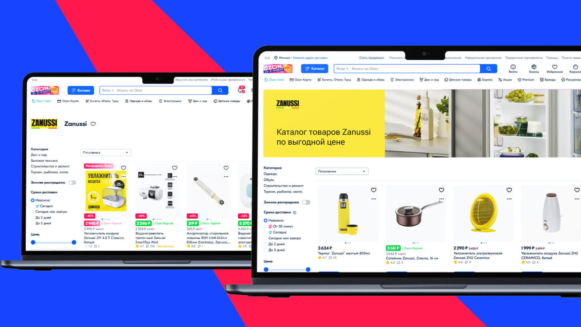 Для редизайна оформления мы выбрали бренд кухонной техники, который представлен и на WB, и на Ozon — Zanussi. Показываем, как меняется единый стиль профиля в зависимости от площадки размещения: