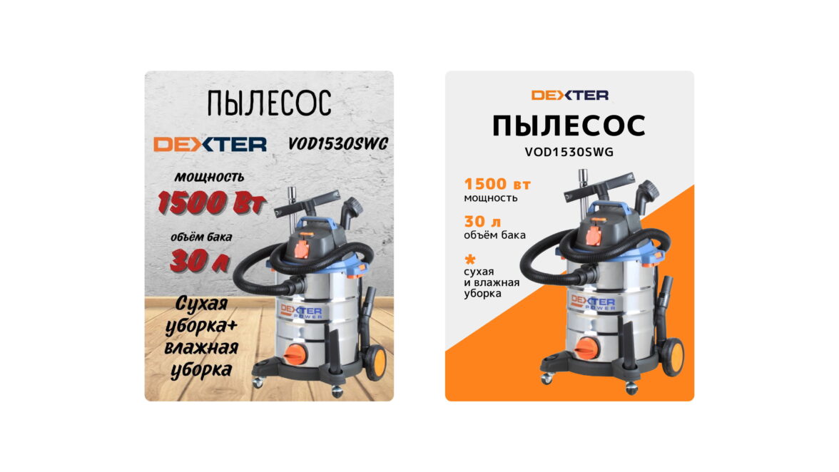 Так ритм и композиция карточки нарушаются. Например, пользователь первее обратит внимание на мощность «1500 ВТ», чем на название или фото товара. В итоге карточка выглядит «грязной» и неаккуратной: впечатление от продукта портится.
