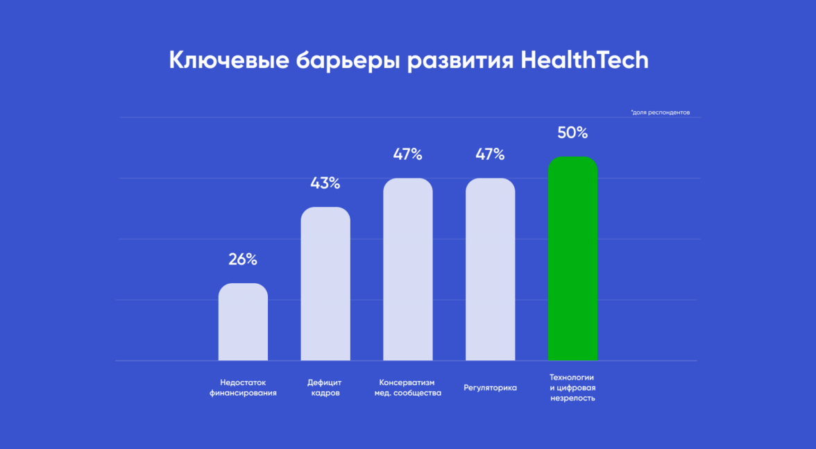 Ключевые барьеры рынка, согласно данным исследования «Барьеры и драйверы российского HealthTech»