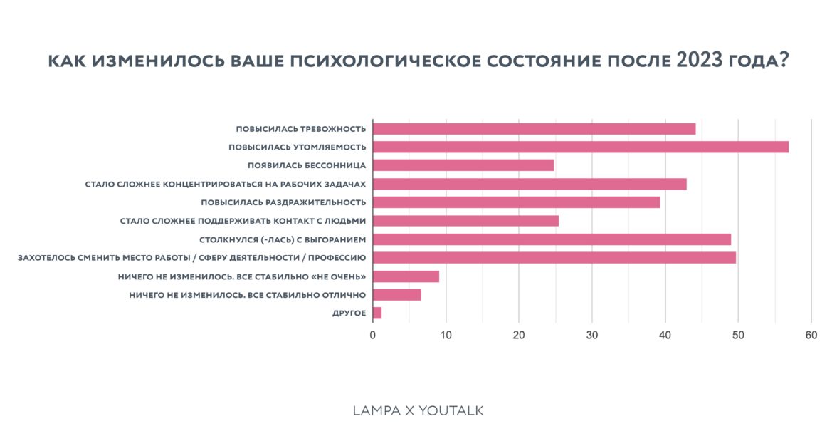 Заявки на психологическую поддержку в компаниях приходят к нам практически каждый день. В современном мире с его вызовами компании стремятся помогать сотрудникам разобраться как с внутренними проблемами в коллективе, так и с проблемами XXI века: эмоциональным выгоранием и стрессом. Сохраняя конфиденциальность, сотрудники могут улучшить свое психоэмоциональное состояние с психологом, что положительно сказывается на работе. Вторым в рейтинге запросов на помощь идут вебинары или воркшопы (мини-тренинги с максимальным вовлечением сотрудников. Самые частые темы: выгорание, коммуникация в коллективах (особенно команды, работающие удаленно), стресс. Последние исследования 2023 года показали, что выгорание, продолжает являться проблемой номер один в коллективах. Что делать работодателю? Говорить об этом. И подкреплять действиями. Проводить просветительные мероприятия, иметь памятки, знать симптомы на ранних стадиях. Можно создавать альтернативные активности: спорт, активный отдых, поддержка сотрудников на пути решений этой проблемы. Со стороны каждого из нас — помнить о балансе. Например, добавить в жизнь активности: заниматься спортом или творчеством. Вспомните, что вы любили в детстве: мастер-классы по рисованию, вокал, танцы, книги, — то, что наполняет вас и делает счастливым. Ослабить контроль ума, в свою очередь, помогут медитации.