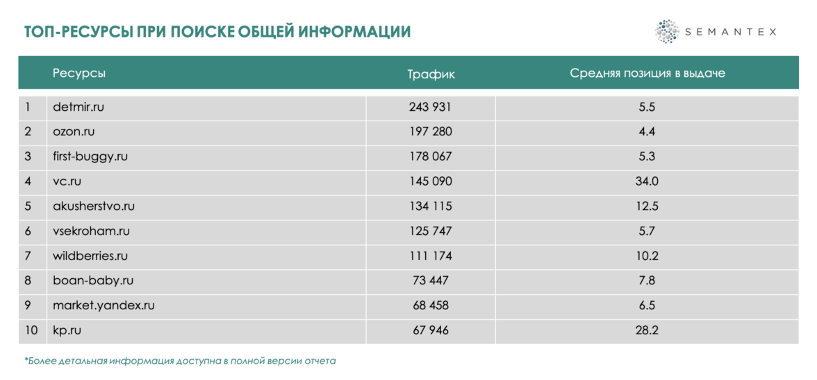 detmir.ru (трафик: 26 173, средняя позиция в выдаче: 4.0),
