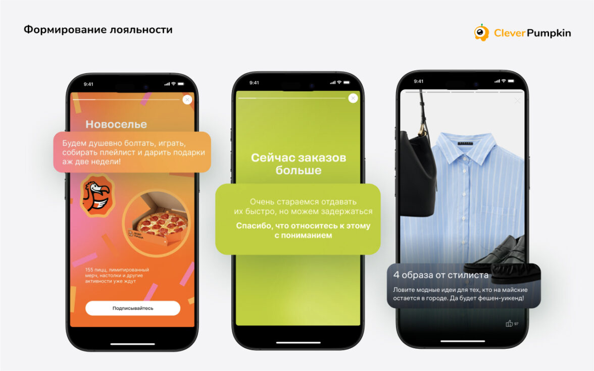 Stories ориентированы на клиента, а именно клиентоориентированный контент давно стал стандартом в digital-среде. Пользователь больше не реагирует на массовые рассылки и ждет, что бренд будет учитывать его вкусы, привычки, историю покупок и делать специальные предложения.