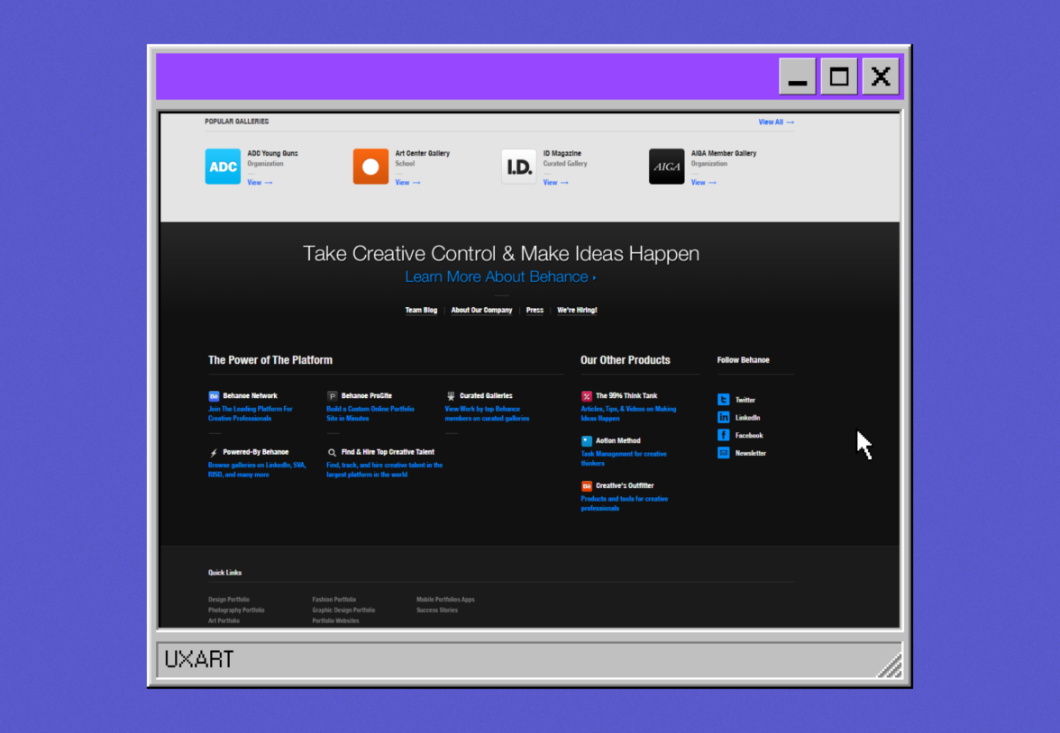 В футере выделили популярные галереи от авторов, в остальном все также. Информация о Behance и других продуктах.