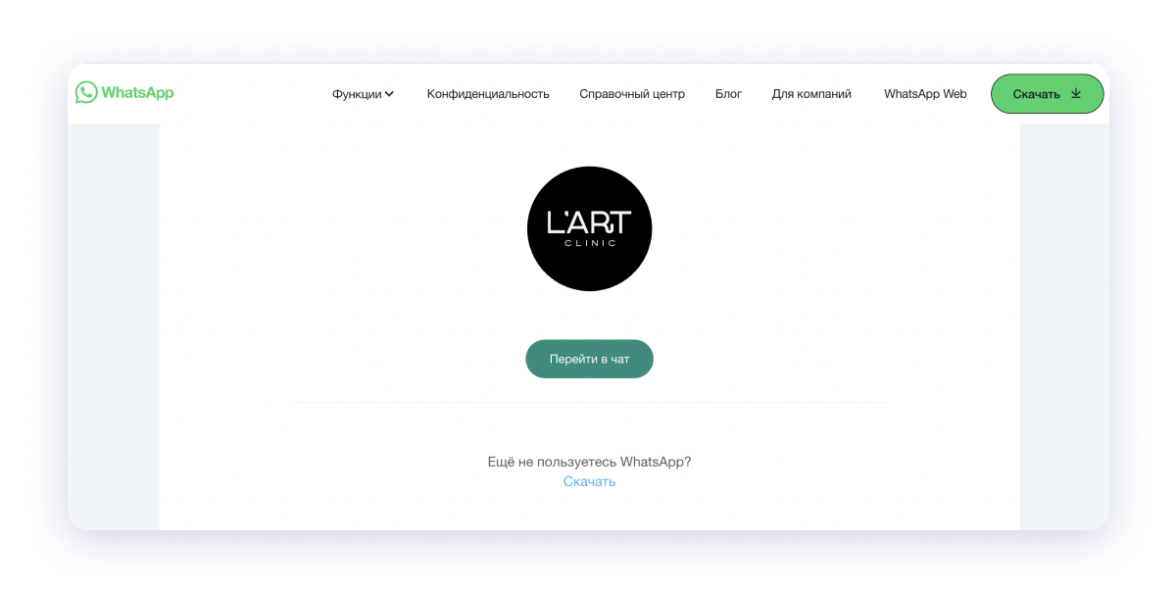 Переход к диалогу с компанией в WhatsApp через виджет на сайте