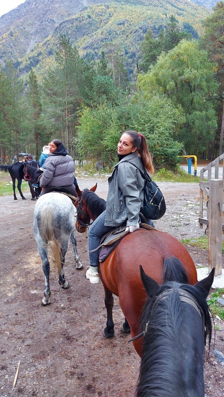 На следующий день по плану был подъем на старых кресельных подъёмниках 1960-х годов на гору Чегет. Ощущения достаточно острые — лететь над лесом на стареньких креслах. Но окружающая красота сглаживает впечатления от высоты. После прогулки часть команды пошла отдыхать в баню El Par, а часть продолжила день походом в долину нарзанов на лошадях.