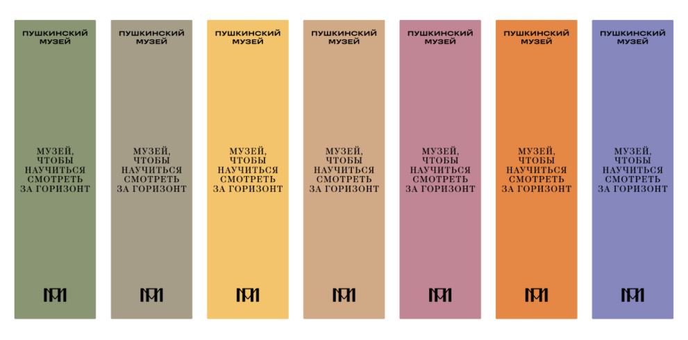 Пушкинский музей впервые с 2012 года обновил визуальный стиль. Новая палитра включила глубокую охру, оранжевый, болотный зелёный и тёплый фиолетовый. Теперь логотип представляет собой монограмму из букв «П» и «М», которая символизирует музей и заменяет прежнее изображение фасада.
