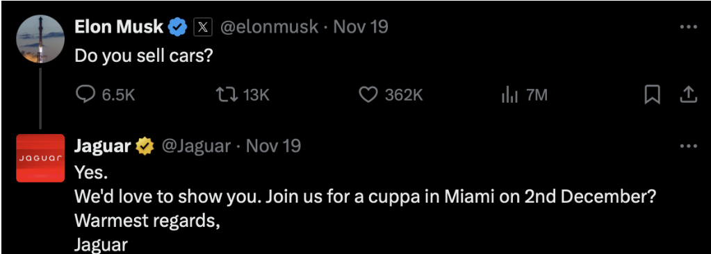 Даже Илон Маск отреагировал на этот ребрендинг и сам ответил на вопрос «Как тебе такое, Илон Маск?» в социальных сетях бренда.