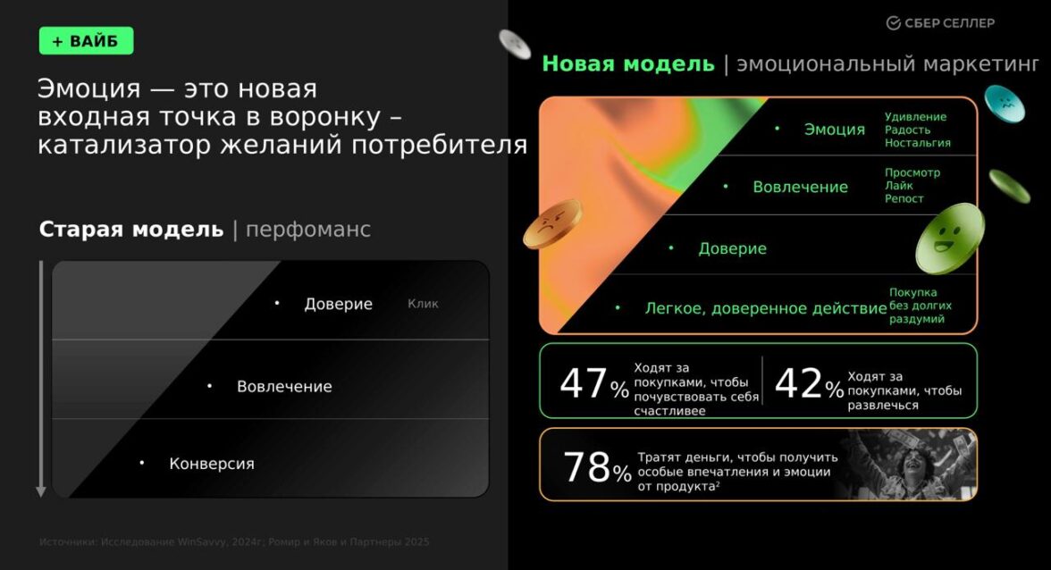 Для стимулирования спикер «СберСеллера» предлагает развивать маркетинг эмоций, учитывая, что половина россиян рассматривает шопинг как досуг. Однако текущая ситуация осложняется дефицитом инвентаря и увеличением рекламных сообщений, что приводит к росту стоимости рекламы: CPC и CPA растут более чем на 20% против 16% по всему digital. «Это вызов для индустрии — при охлажденном спросе и неэнергичной экономике важно следить за стоимостью контакта и сводить дебет с кредитом», — подчеркнула она.