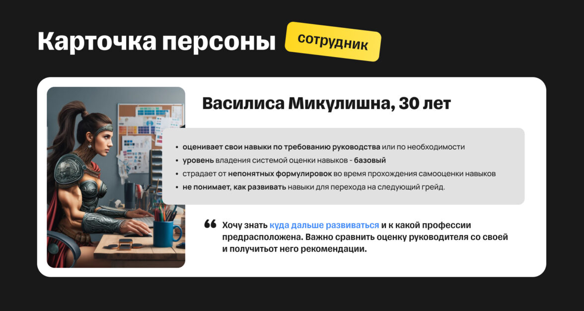 Это — сотрудник Василиса Микулишна, которая хочет знать, куда дальше развиваться и к какой профессии она предрасположена