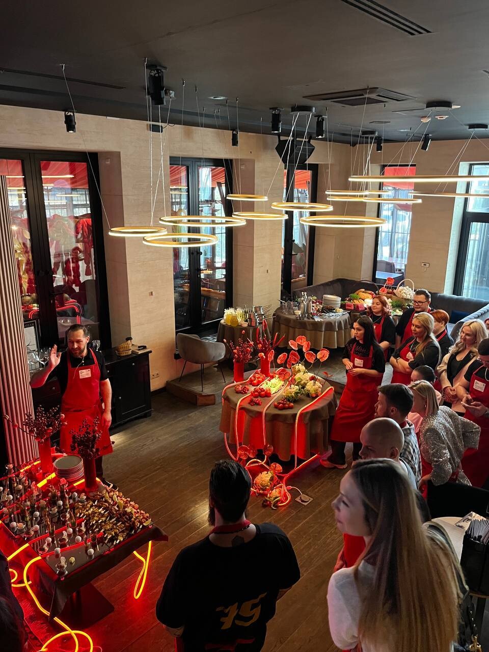 На тусовке ребята поделились на команды и состязались в приготовлении местных блюд под надзором шефа. Получился вау-эффект, посыпались бесплатные отметки!