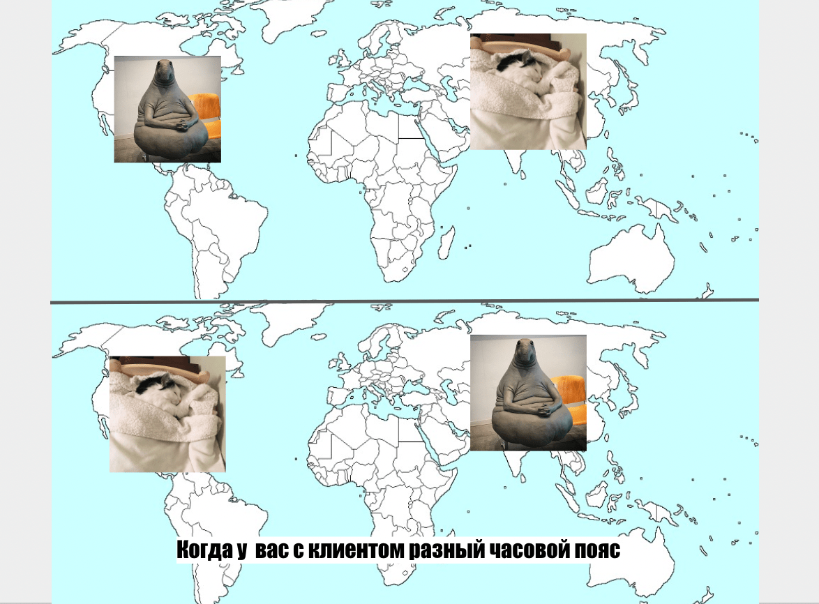 Разница во времени — это нормальная часть работы с клиентом. Он может написать в 3 утра, потому что на Бали сейчас начало дня. Конечно, ответим мы позже, и пользователь это понимает. Но не обходится и без комичных ситуаций.