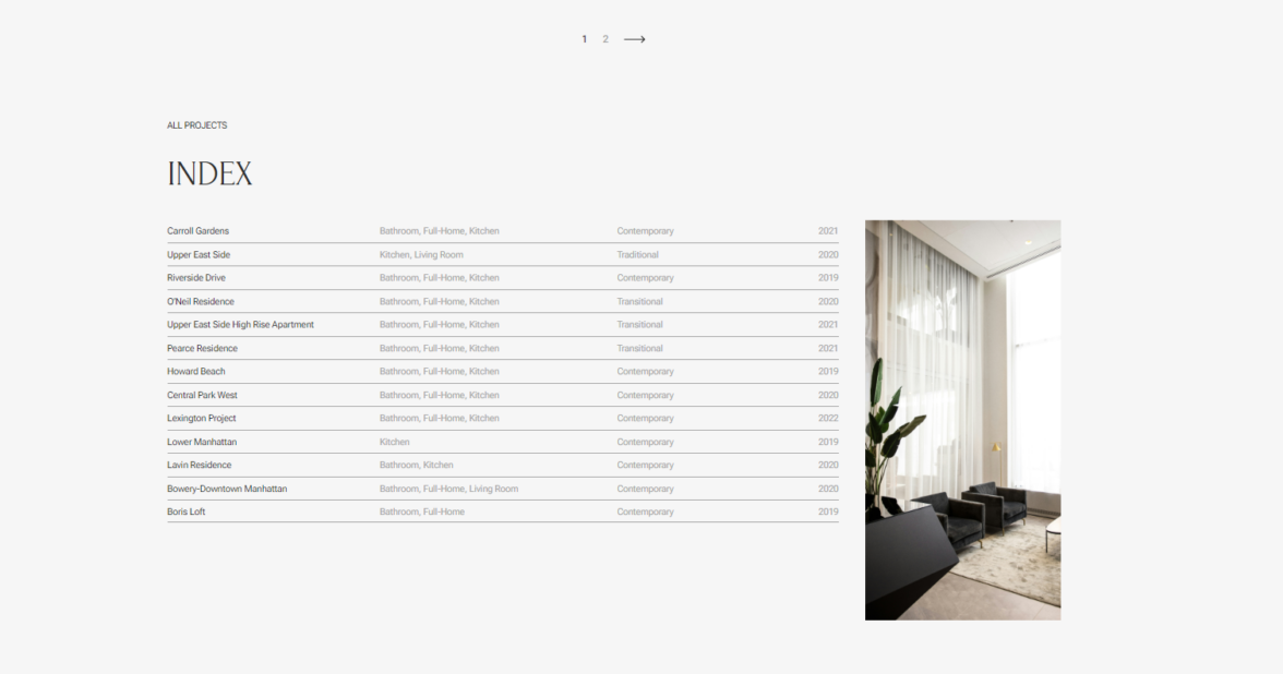 Визуальная подача также была тщательно продумана. Крупные изображения с аккуратной типографикой позволяют посетителям оценить качество реновации и погрузиться в атмосферу каждого проекта.