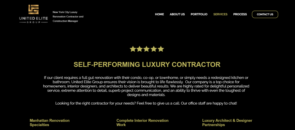 United Elite Group — компания из Нью-Йорка, которая занимается реновацией премиальной недвижимости: от проектирования и визуализации до реализации сложных архитектурных решений. Их клиенты — владельцы роскошных домов, которые ценят архитектурную эстетику и функциональные пространства.