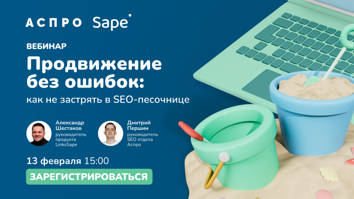 13 февраля в 15:00 на бесплатном вебинаре вместе с экспертами российского рынка поисковой оптимизации обсудим проблему вывода сайтов из песочницы и рассмотрим методы эффективного продвижения, применимые на практике.
