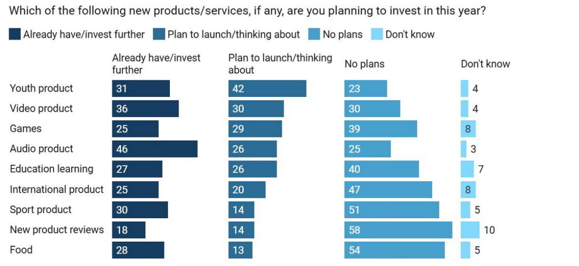 Сложившаяся ситуация заставляет издателей расширять свою аудиторию. 42% опрошенных заявили, что рассматривают возможность запуска в 2025 году продукта, ориентированного на молодежь, 29% — говорят о возможном запуска игрового продукта, а 26% — продукта, связанного с образованием.
