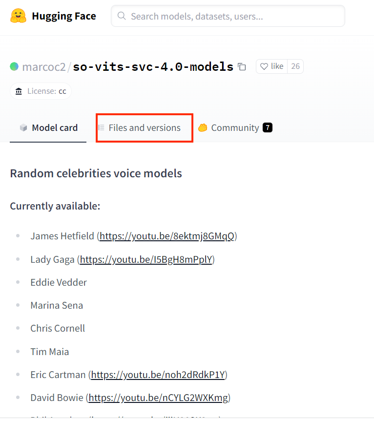 4. Скачиваем голосовую модель (то есть тот голос, в чьем исполнении мы хотим услышать песню)