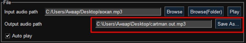 В поле Input audio path выбираем аудиофайл где только вокал той песни, которую мы будем менять: