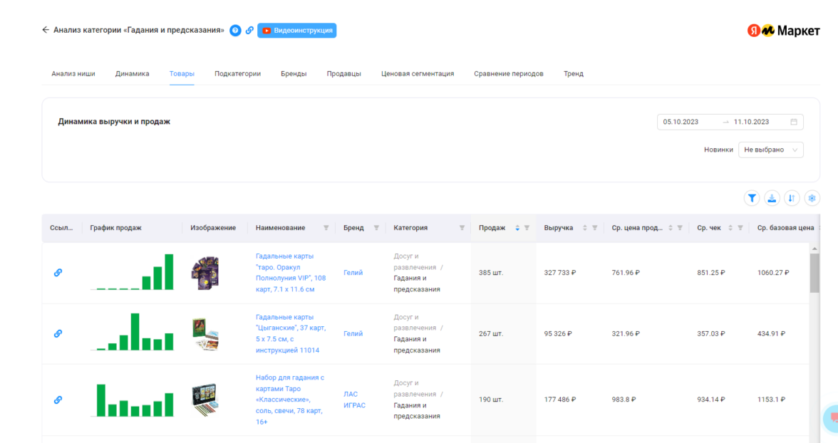 Довольно много тарологов и среди покупателей Яндекс.Маркета. За тот же период товаром-лидером по количеству продаж в категории «Гадания и предсказания» на Маркете стали гадальные карты Таро «Оракул Полнолуния». За неделю их приобрели более 380 раз, выручка селлера превысила 320 тысяч рублей. По количеству продаж селлер обогнал своего конкурента, торгующего цыганскими картами. К гадалке не ходи, хорошо карточку проработал.