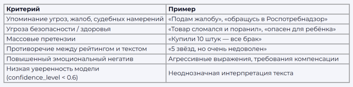 1. Реализовать в AI-системе автоматическое выявление проблематики отзыва и оповещение о рисках.