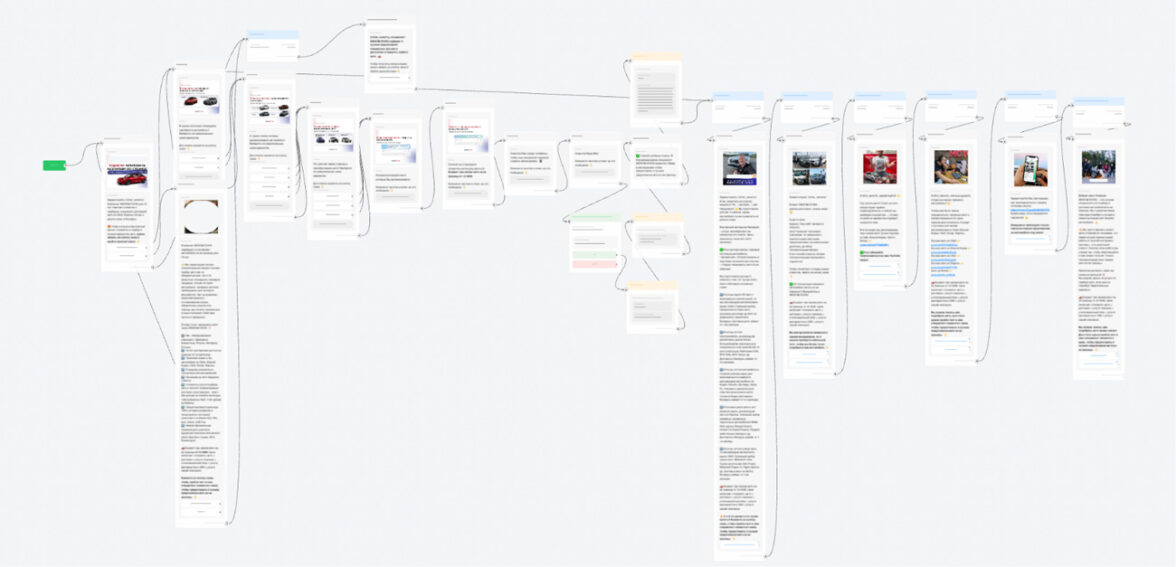 2. После подписки в чат-бота пользователь попадает в нашу воронку из прогревающих сообщений. Пример цепочки сообщений: